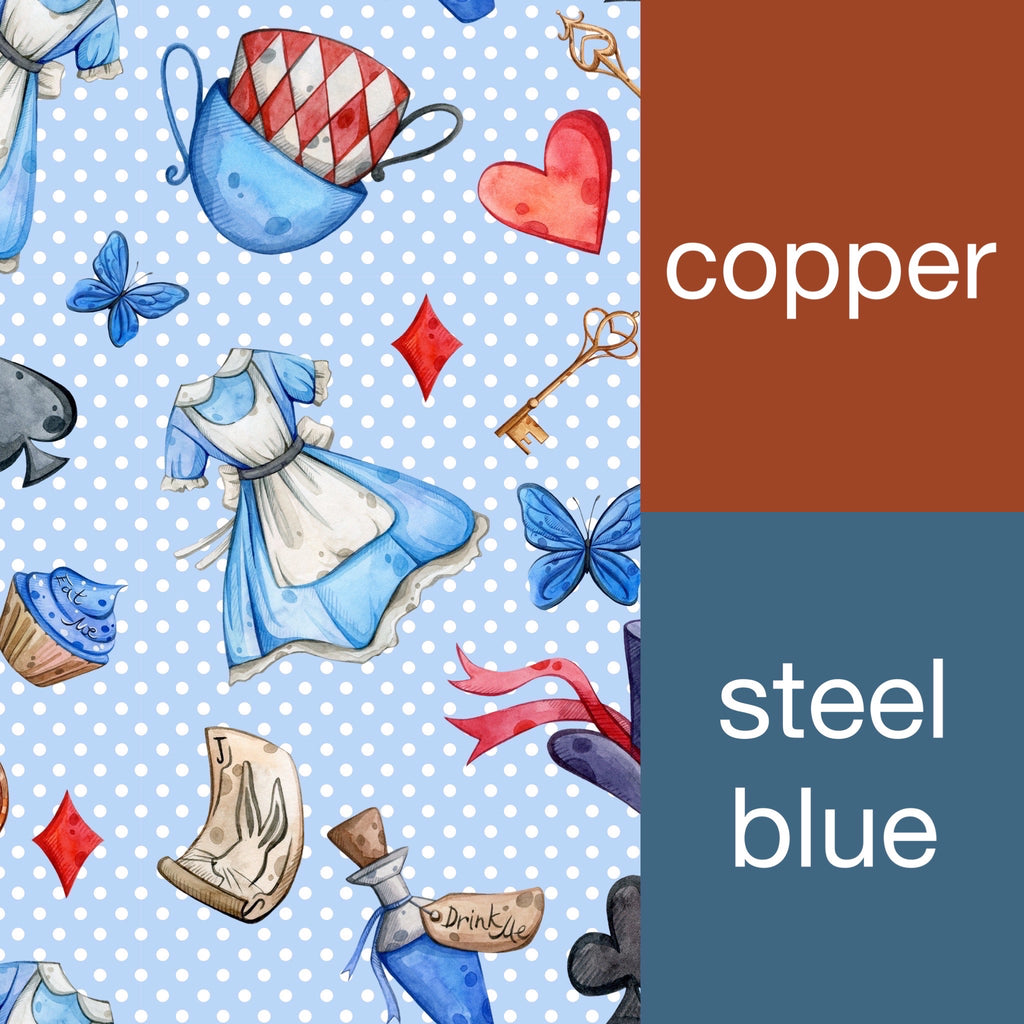 • In the example pictures, the print is not to scale. Pattern placement and sizing may vary from what is shown.